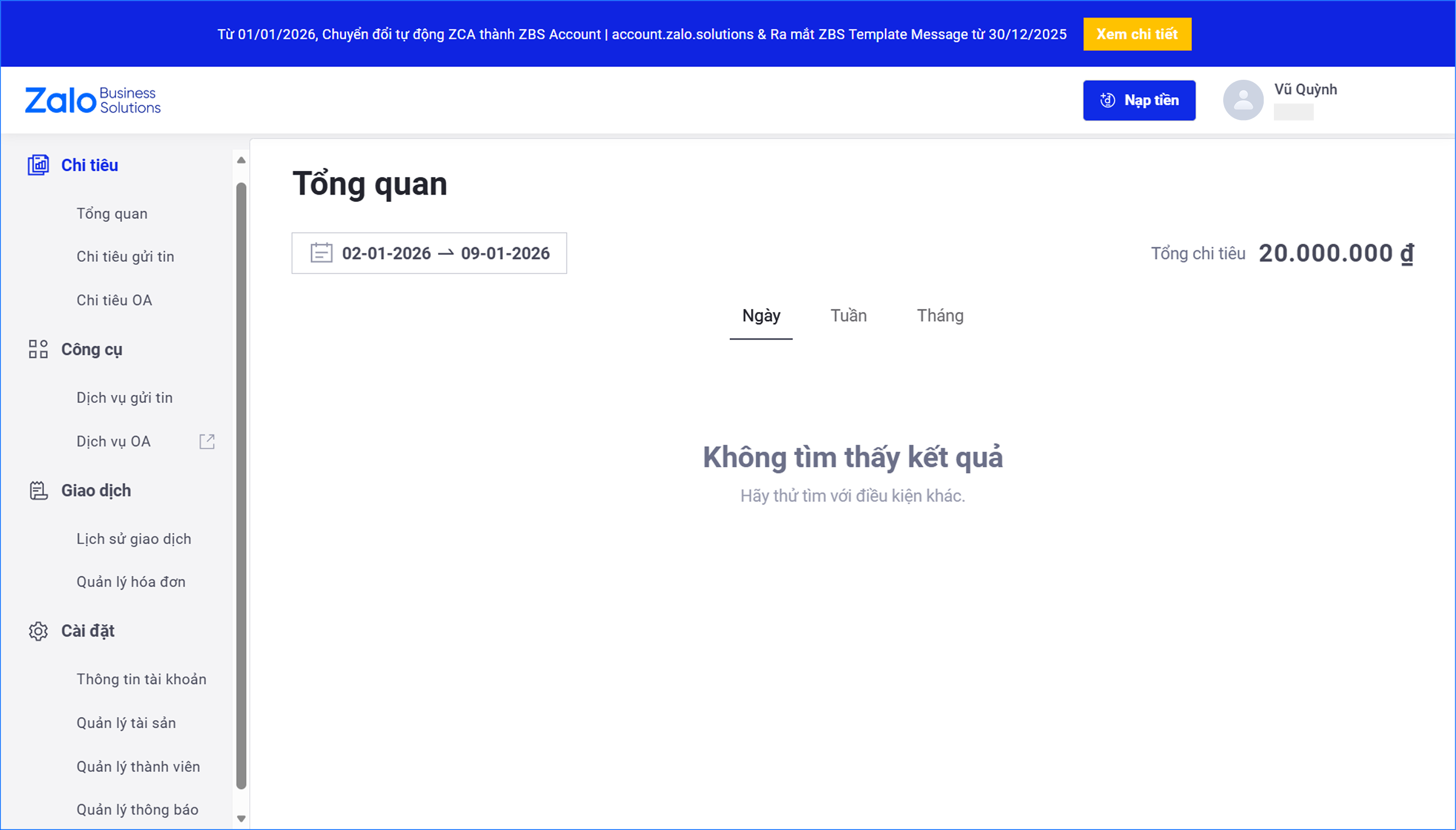⚠ Lưu ý: Kể từ ngày 01/01/2026, Zalo Cloud Account (ZCA) chính thức đổi tên thành Zalo Business Solutions Account (ZBS Account).