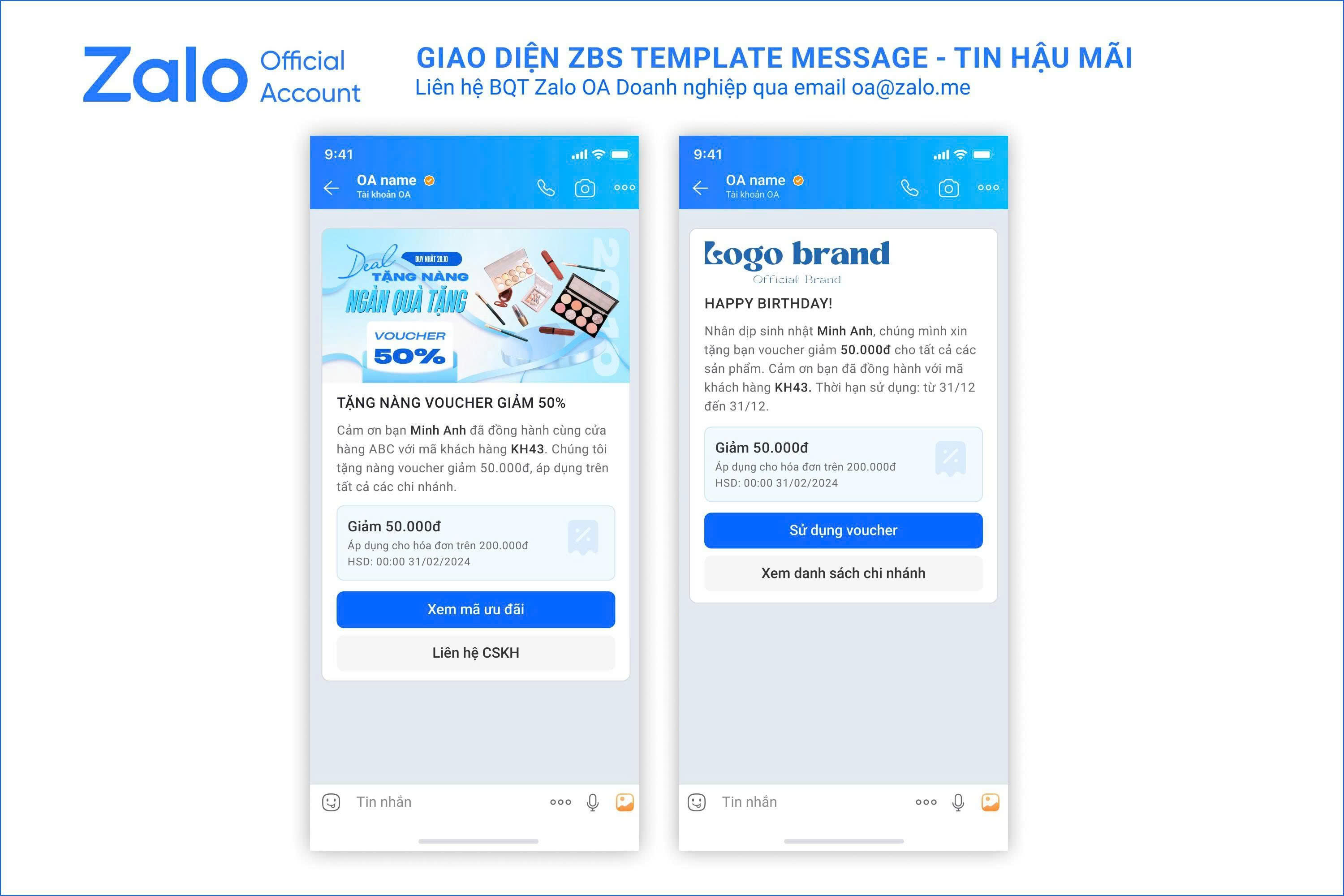 ZBS Template Message là giải pháp tin nhắn cho Doanh nghiệp theo mẫu (template). ZBS Template Message có 2 loại chính: Tin Giao dịch và Tin Hậu mãi