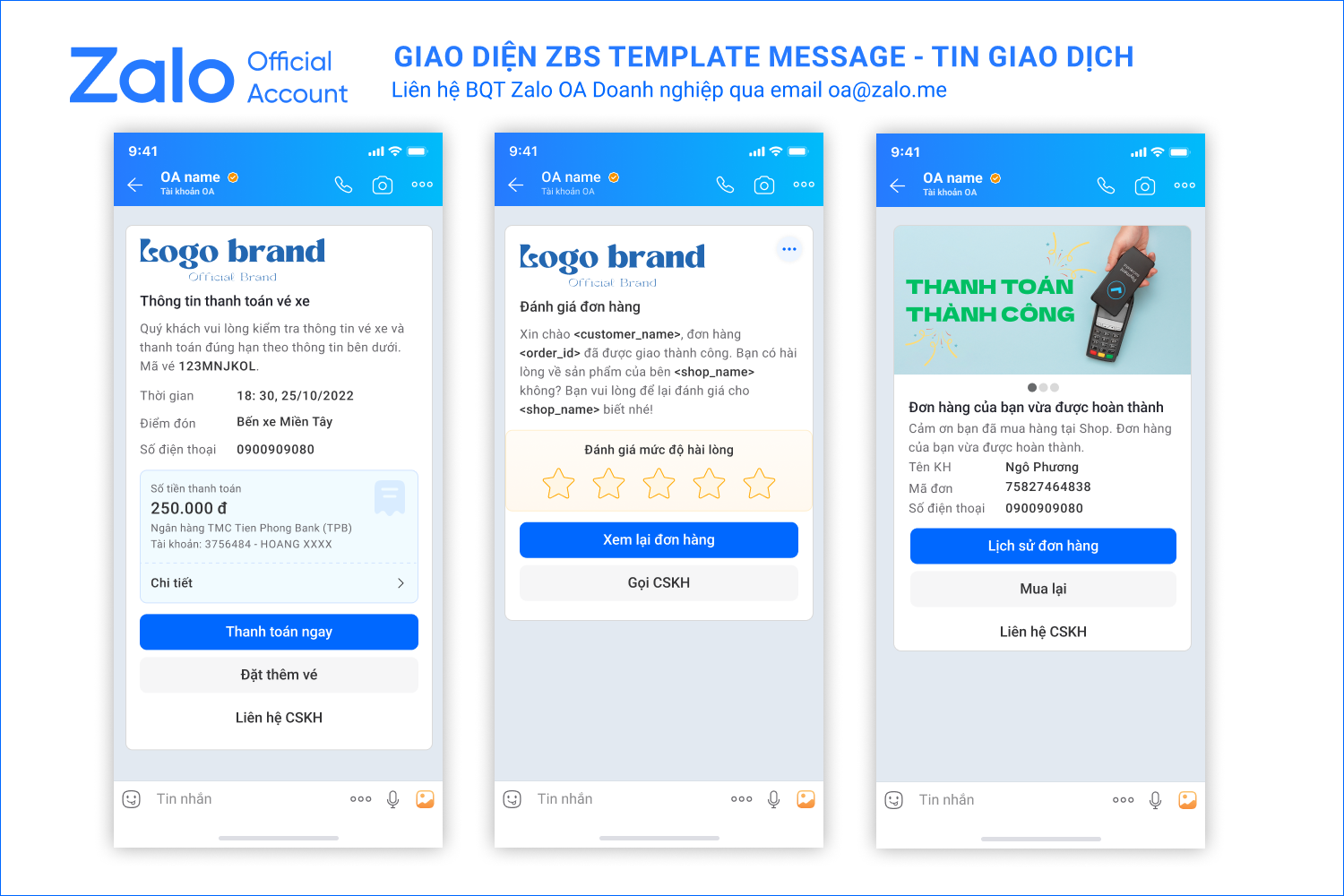 👉 Cách gửi ZBS Template Message: Xem thêm tại đây và vui lòng theo dõi các thông báo tiếp theo trên trang Zalo for Developers tại đây.