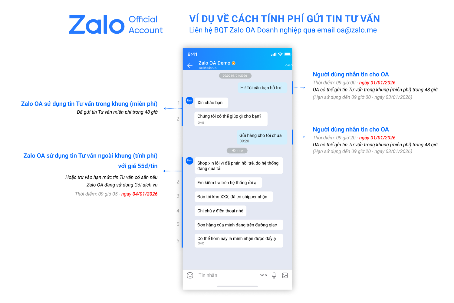 - Tin Tư vấn gửi trong khung 48 giờ kể từ tương tác cuối của người dùng hoàn toàn miễn phí.