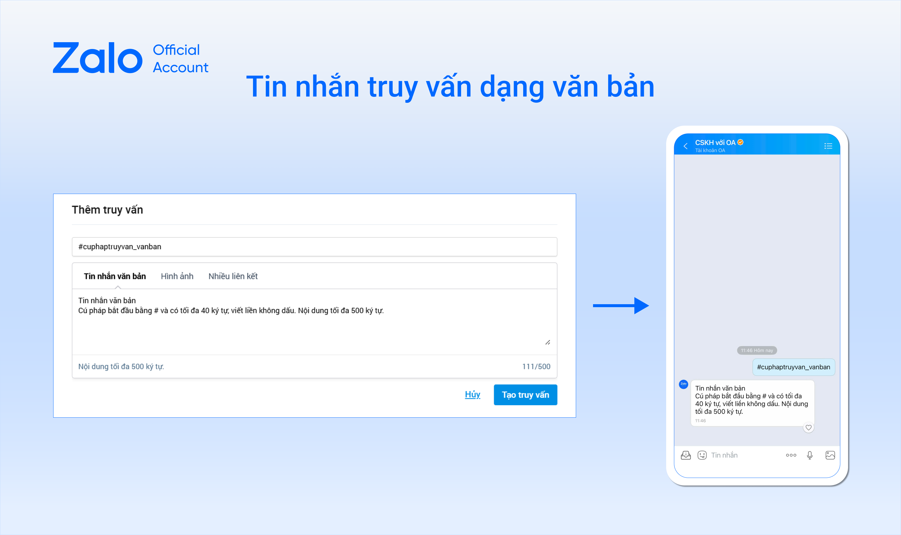 Truy vấn là tính năng phản hồi tự động dựa theo các cú pháp truy vấn được thiết lập sẵn (Ví dụ #ten_cu_phap). Mỗi cú pháp khi thiết lập sẽ bao gồm: