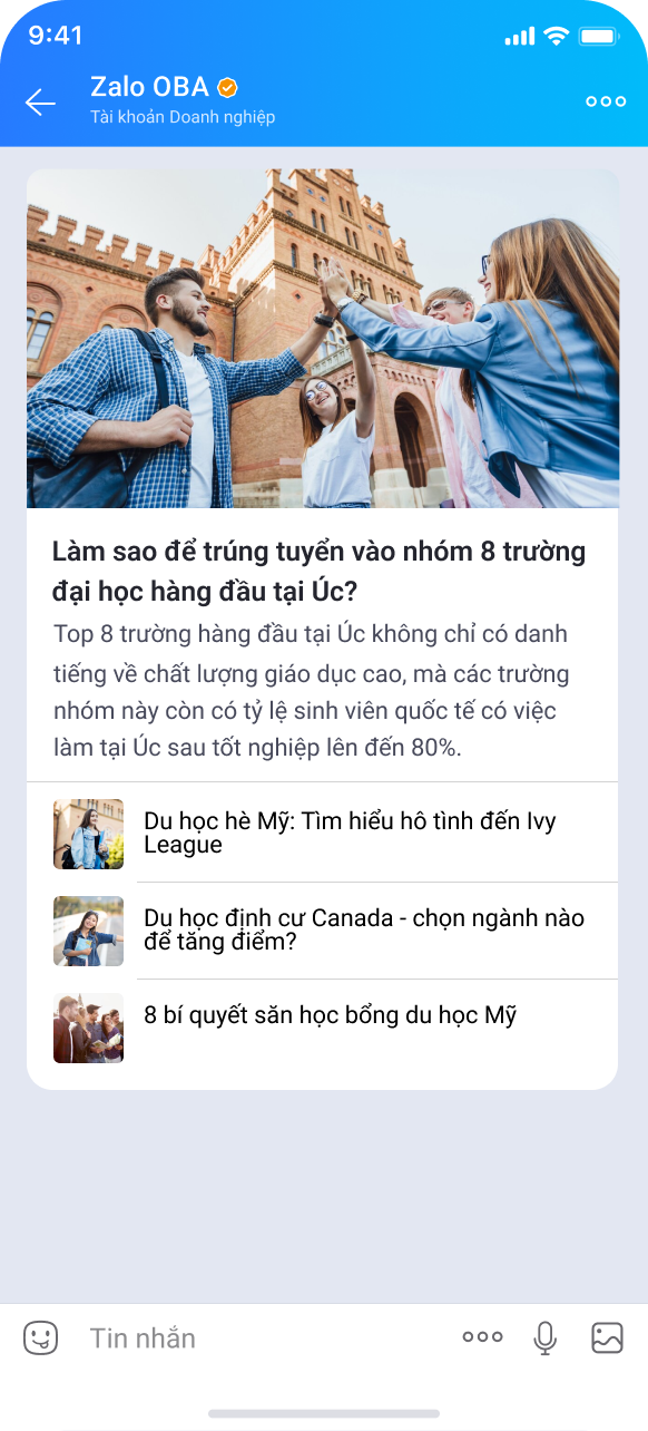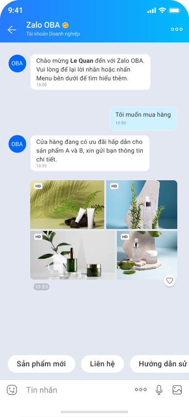 Tin nhắn là tính năng tương tác hai chiều giữa Zalo OA của doanh nghiệp và người dùng Zalo